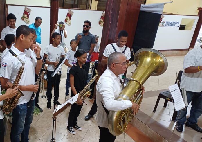 Finalmente, el director de la Escuela de Música, Danny Muñoz, luego de agradecer la entrega de instrumentos, dirigió la interpretación de una marcha de su autoría titulada “Sargento De La Cruz”, a cargo de los estudiantes de la escuela Caonabo Díaz, dejando a todo el público gratamente impresionado por la calidad de la ejecución.