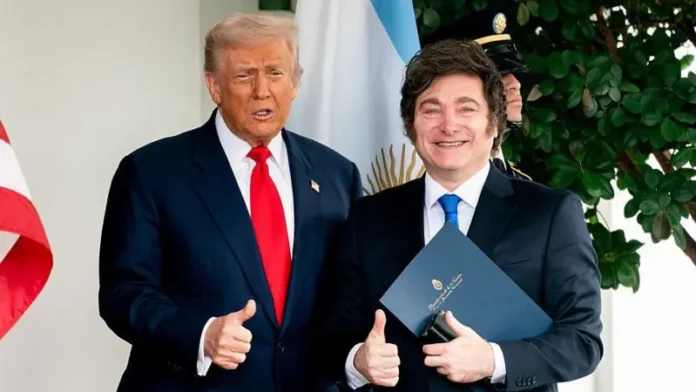 Donald Trump y Javier Milei jugando en el mismo play