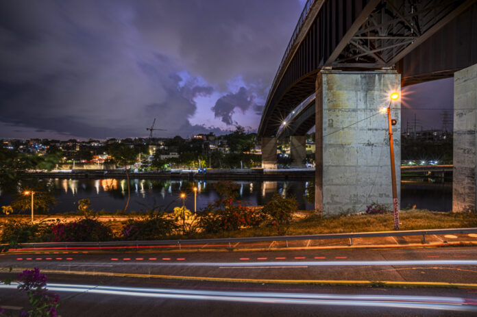 Bajo el Puente Matías Ramón Mella, el río Ozama refleja una ciudad que sigue despierta. La estructura firme sostiene el paso constante; abajo, la luz dibuja líneas que no se detienen.