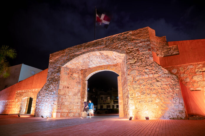 En la madrugada del 27 de febrero de 1844, fue aquí donde Matías Ramón Mella disparó su trabuco, un gesto breve pero definitivo que encendió el movimiento independentista. Hoy, la luz artificial resalta las texturas del muro, mientras las siluetas humanas cruzan el arco, recordándonos que la historia no permanece inmóvil: se transita.