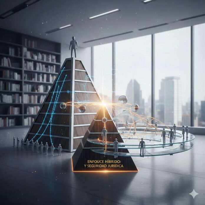 Ante esto, y siendo que ninguno de los dos enfoques, el vertical y el horizontal, resultan suficientes, por separado, para responder adecuadamente a los análisis, el diseño y el rediseño de las estructuras organizativas de los entes y órganos públicos, los reformadores se ven en la imperiosa necesidad de combinar ambas concepciones, rescatando de cada una los elementos que, bajo un enfoque híbrido, pueden atender las necesidades del sector público, sabiendo que existe una dimensión formal, que garantiza seguridad, la que solo puede ser cubierta con métodos que aporta el verticalismo y la jerarquía administrativa, así como una dimensión flexible, con cierta elasticidad, que solo puede ser atendida por medio de la intervención de los procesos institucionales, que es facilitada por la horizontalidad organizativa.