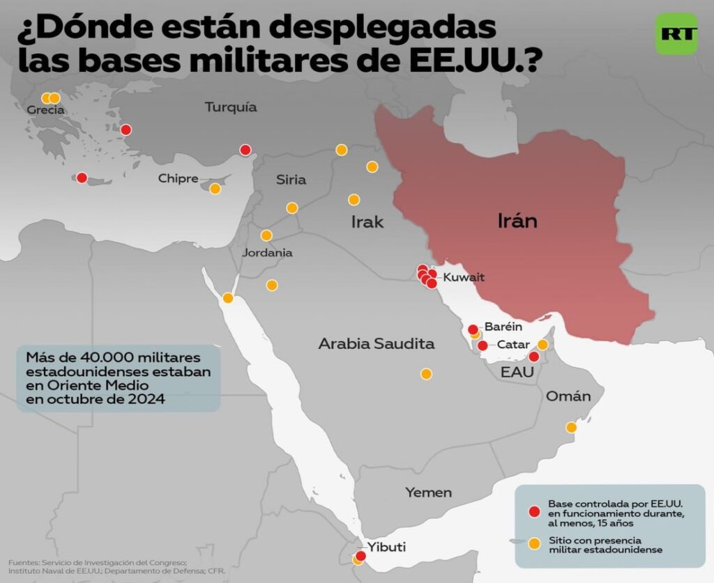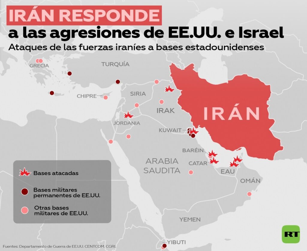 La ofensiva militar lanzada el pasado sábado por EE.UU. e Israel contra Irán derivó en una rápida escalada en toda la región de Oriente Medio, que alberga numerosas bases militares estadounidenses.