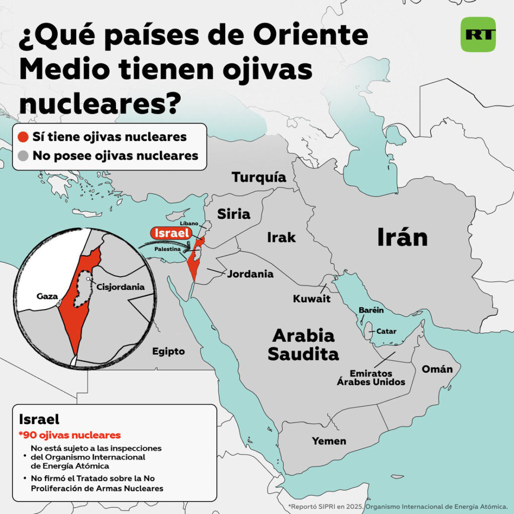 Aunque Washington y Tel Aviv han justificado su nueva agresión afirmando –sin prueba alguna– que Teherán está desarrollando armamento atómico, Israel es el único país de Oriente Medio que supuestamente tiene ojivas nucleares.