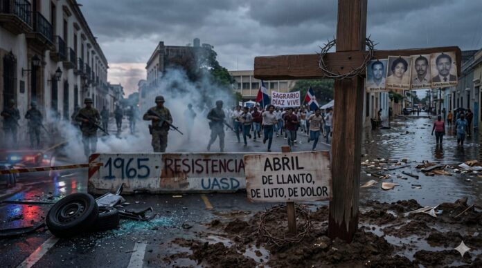 Herencia de esa intervención fue el régimen gubernamental que durante los siguientes 12 años regaría de muerte, dolor y sufrimiento toda la geografía nacional sin reparar en calendario, pero que abril de 1972 tuvo su mención trágica cuando el 4 de ese mes, tropas policiales asaltaron el campus de la Universidad Autónoma de Santo Domingo, hiriendo a la estudiante Sagrario Ercira Díaz Santiago, la que tras un conmovedor viacrucis murió el 14 de ese mes.