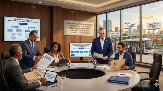 Los artículos 9 al 11 de la Ley Orgánica de la Administración Pública se centran en establecer disposiciones dirigidas a garantizar la calidad, la eficacia, la eficiencia y la agilidad en la prestación de los servicios públicos, y ordena que el Poder Ejecutivo reglamente para la automatización, innovación y coordinación efectiva de los procesos que tienden a ello. El Reglamento No. 353-24, de Aplicación de la Ley Orgánica de la Administración Pública, como parte de la escenificación de la potestad reglamentaria del presidente de la República, dispone y desarrolla en sus artículos 44 y siguientes normas y criterios relacionados con la regulación, alcance, operación e impactos de los servicios públicos.