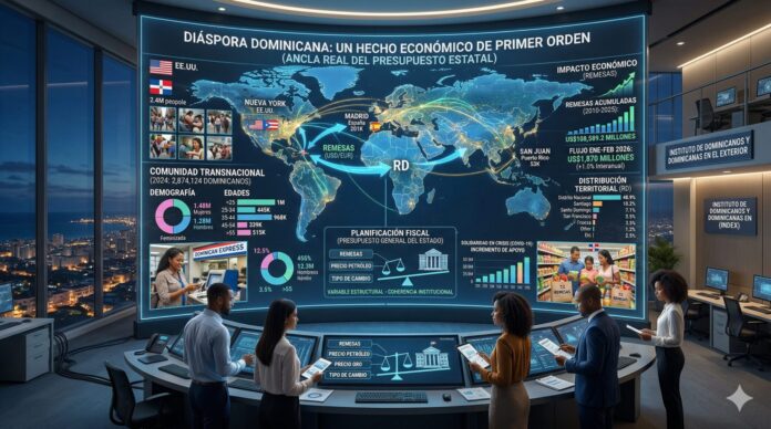 La expansión sostenida de la diáspora dominicana no es solo un fenómeno demográfico; es un hecho económico de primer orden. Cada nuevo dominicano en el exterior amplía una red transnacional que, mes tras mes, se traduce en flujos de remesas que inciden directamente en el consumo, la estabilidad macroeconómica y, de forma indirecta, en la formulación del Presupuesto General del Estado. No es una variable accesoria: es una de las anclas reales sobre las que descansa la planificación fiscal.