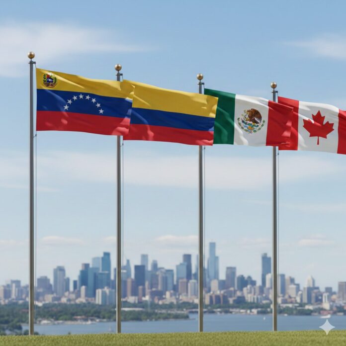 Eso quiere decir que Venezuela, Colombia, México y Canadá han sido forzados a diversificar sus relaciones comerciales, políticas y militares, como forma de proteger sus intereses y los de sus ciudadanos. Así como sus territorios, para evitar la experiencia de 1846 y 1848, cuando a México le pusieron una pistola en la sien para que firmara un acuerdo, mediante el cual cedió más de la mitad de su territorio al vecino invasor, el cual constituye la mayor extensión de la zona Oeste y con las mayores reservas de riquezas naturales, que han servido de base para sustentar el gran poder económico de la nación Norteamericana. La misma que ahora quiere ampliar repitiendo la historia, no solamente con México, sino con Venezuela, Colombia, Canadá, Panamá y Groenlandia.